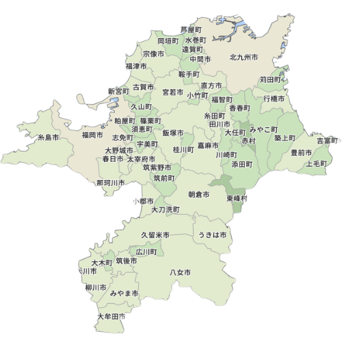 北九州市(門司区|若松区|戸畑区|小倉北区|小倉南区|八幡東区|八幡西区)|福岡市(東区|博多区|中央区|南区|西区|城南区|早良区)|大牟田市|久留米市|直方市|飯塚市|田川市|柳川市|八女市|筑後市|大川市|行橋市|豊前市|中間市|小郡市|筑紫野市|春日市|大野城市|宗像市|太宰府市|古賀市|福津市|うきは市|宮若市|嘉麻市|朝倉市|みやま市|糸島市|那珂川市|